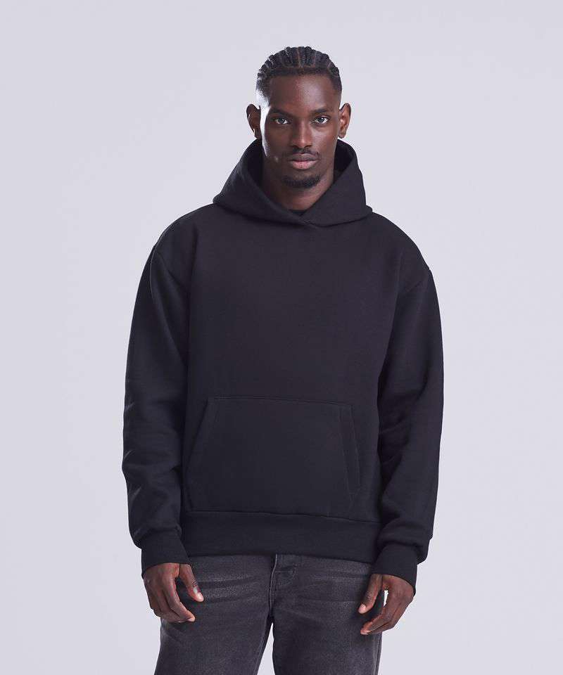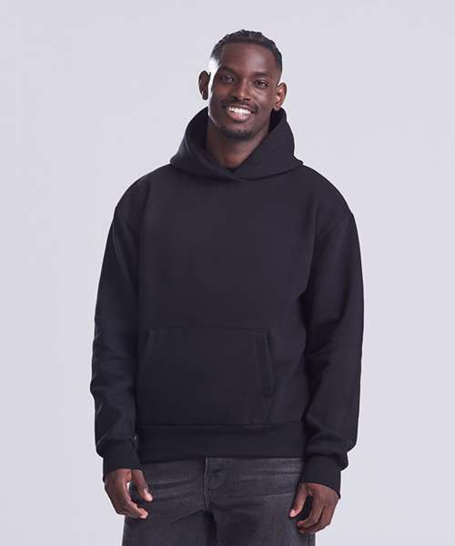 This unisex hoodie ensures maximum style with minimal effect. Made with a heavyweight, premium, cotton-rich fabric, it has an oversized boxy fit, true to size. Features include a large pouch pocket, ribbed cuffs and hem. A hoodie to keep you warm and comfortable – and an everyday essential.